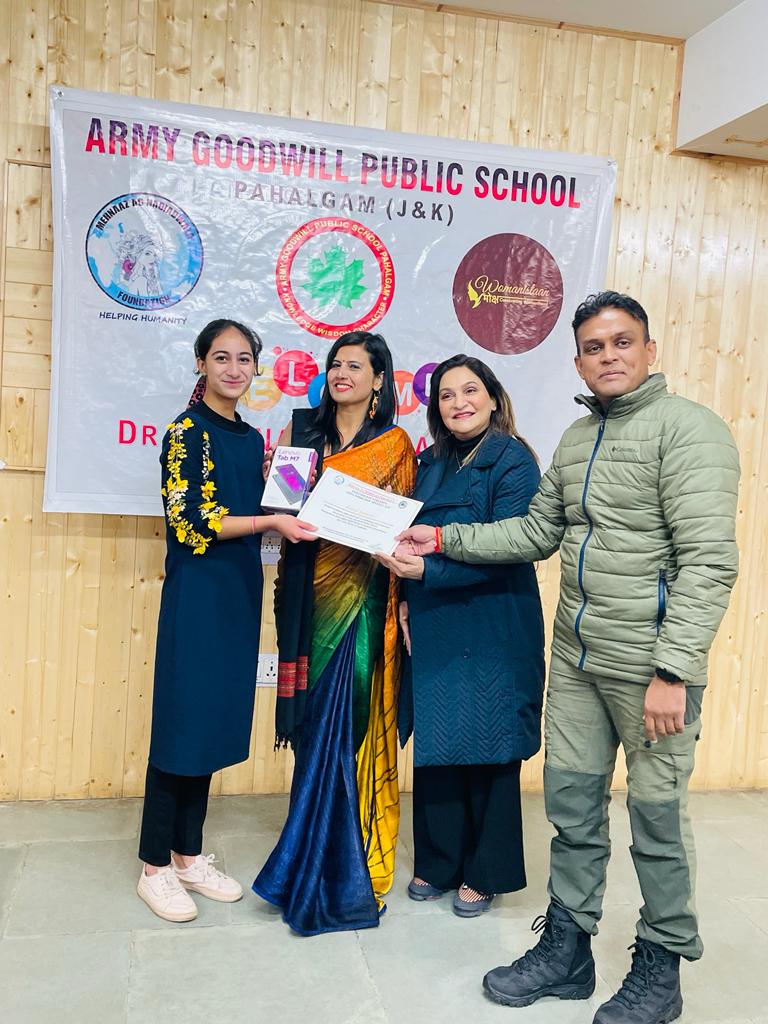Children’s Day celebration was attended at Pahalgam - Kashmir by Dr Mehnaaz Nadiadwala. Lap top to the best student of the year was give. And a tab to the most promising girl child. 40 Certificates were awarded for academic excellence and trophies were given to army faculty and Commanidng officer Ajeet Agarwal and Major Alok along with principal Ila Upadhyay.